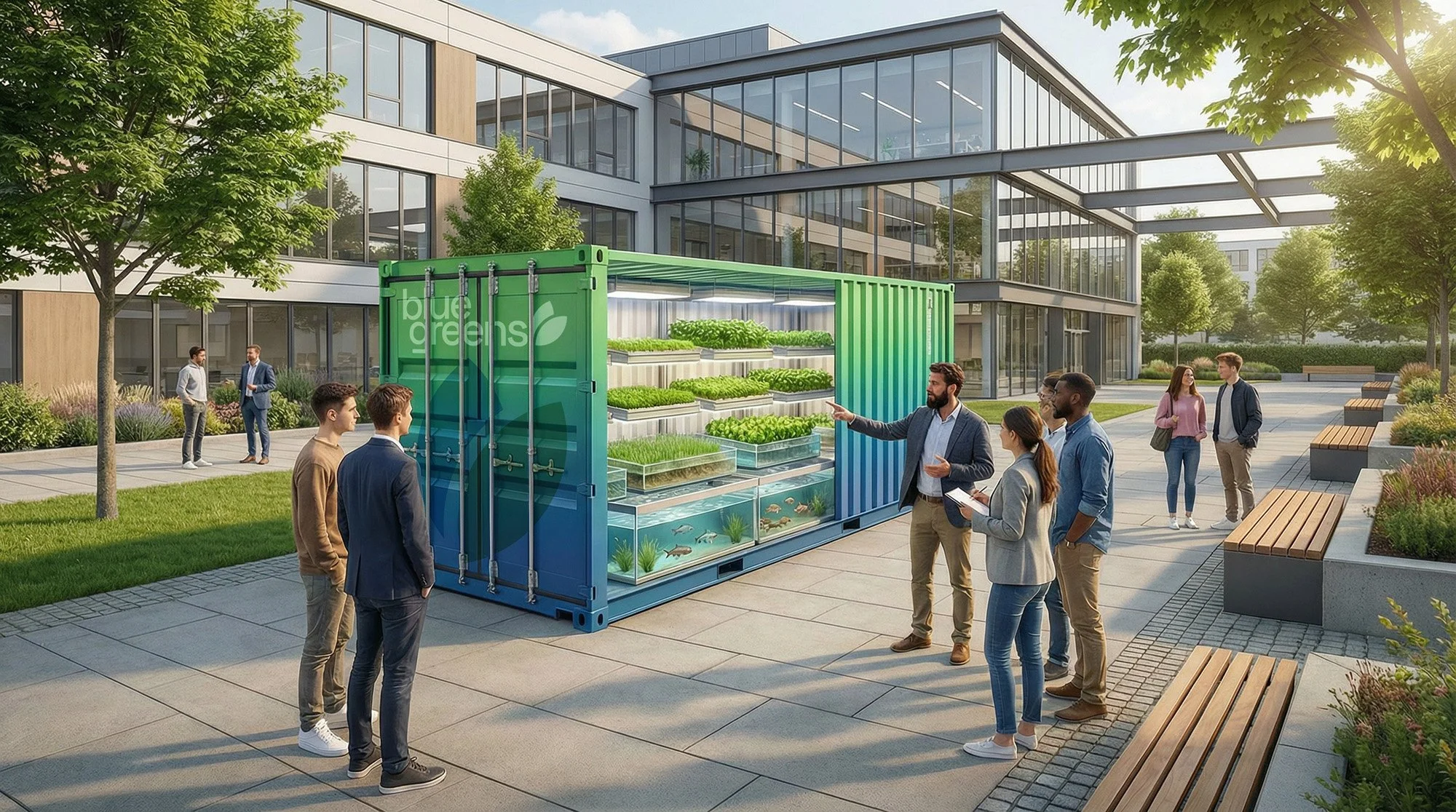 In Städten wird die BlueGreens BOX zum Lern-, Erlebnis- und Produktionsort. Sie zeigt, wie lokale Lebensmittelproduktion auch auf begrenztem Raum funktioniert – als Teil von Stadtentwicklung, Bildung und Standortmarketing. Die BlueGreens BOX verbindet Bevölkerung, Politik und Wirtschaft rund um das Thema Ernährung.
